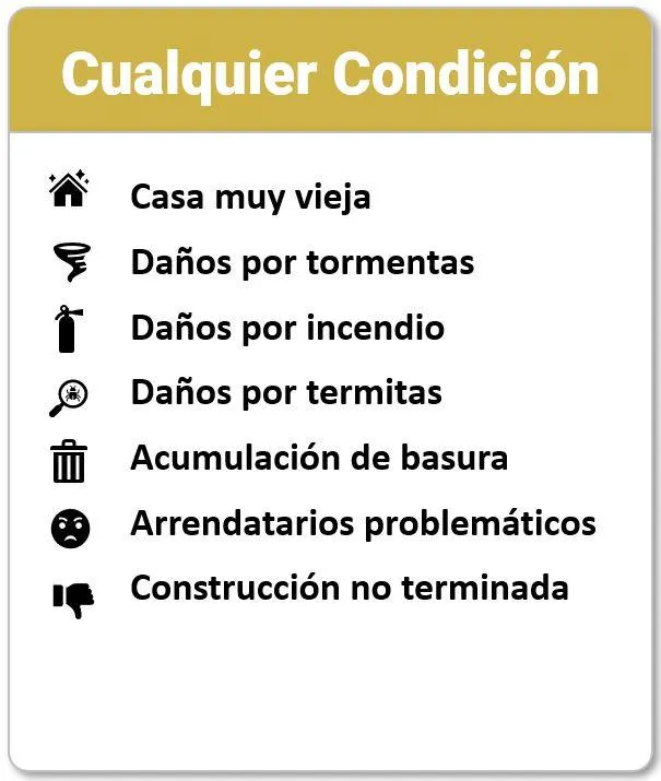 Véndenos tu casa rápido sin Realtors! Cualquier condición. Sin comisiones ni cargos adicionales. Simplemente diligencia la forma que ves al lado o llámanos para que te demos una oferta sin compromiso sobre tu casa, en la condición en que esté!