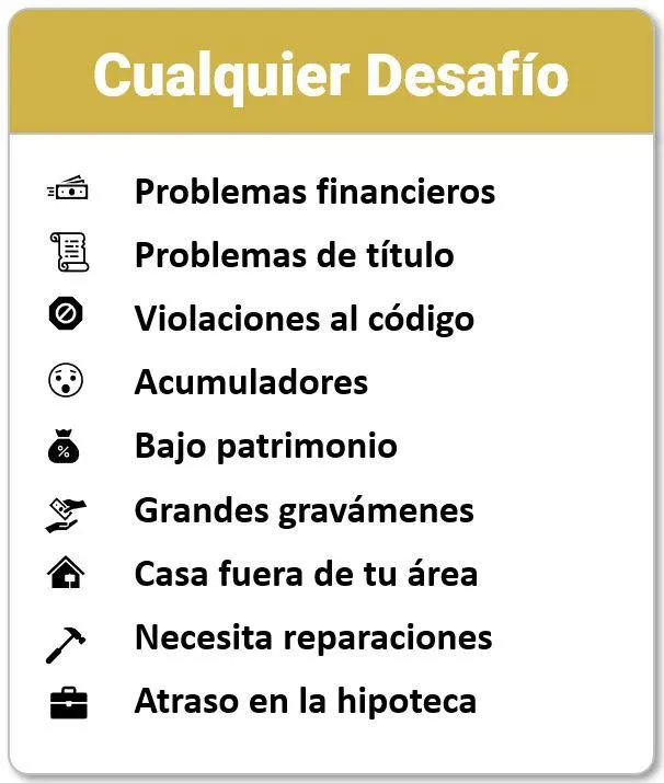 No cargos adicionales. No comisiones. Pon más dinero en tus bolsillos con la venta de tu casa. Recibirás una oferta justa – Tú escoges la fecha de cierre. Pagamos todos los costos!